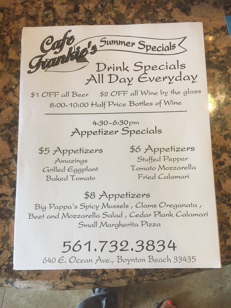 Cafe Frankie's, located in Boynton Beach, FL, is a must-visit for pizza, Italian, and seafood lovers. This restaurant offers a range of amenities, from wheelchair accessibility to free Wi-Fi, making it a convenient and enjoyable dining experience. Customers rave about the crispy pizza, delicious meatballs, and authentic Italian dishes. The catering options are also a hit, with generous portions and affordable pricing. While some reviews mentioned minor issues with burnt pizza bottoms, the overall consensus is positive. Cafe Frankie's is a casual yet classy spot that caters to all, with options for vegetarians and a welcoming atmosphere for families and groups. Don't miss out on the delightful desserts and happy hour specials at this hidden gem in Boynton Beach.